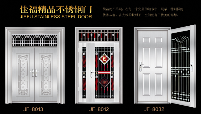 本公司成立于2004年,已有19年的生產(chǎn)進(jìn)戶門的經(jīng)驗(yàn)積累。公司現(xiàn)擁有鋼質(zhì)非標(biāo)門生產(chǎn)線、標(biāo)門生產(chǎn)線及不銹鋼門三條生產(chǎn)線,我公司專業(yè)設(shè)計(jì)、制造、銷售鋼質(zhì)系列進(jìn)戶門、防盜門、不銹鋼門等產(chǎn)品,擁有“宇佳?盈福”和“佳有福”、“家福.興隆”三個(gè)自主品牌和產(chǎn)品系列。公司引進(jìn)了先進(jìn)的生產(chǎn)技術(shù),配置了成龍配套的現(xiàn)代化生產(chǎn)流水線。產(chǎn)品工藝成熟,質(zhì)量上乘。同時(shí),公司廣納賢才,聚集了一批具有開拓創(chuàng)新精神的各類高級(jí)管理和技術(shù)人才,建立了一套先進(jìn)的管理模式。